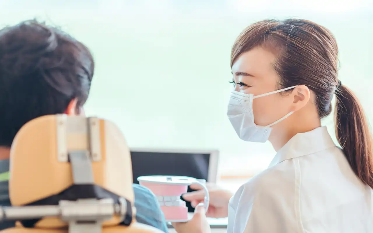 まず歯科医院に慣れてもらうことが第一です。1、2回はブラッシング指導を行ったり、治療台にどんな機械があるかを教えます。例えば、エアーを吹いてみたり、水を勢いよく吸うバキュームを口に入れてみたり、子供の好奇心をくすぐるところから始めます。