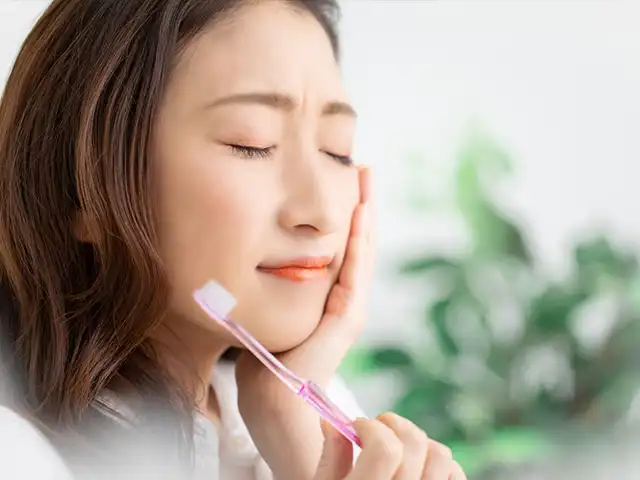 歯ぎしりや食いしばりが強く続くと、歯や歯ぐきに大きなダメージを与えることがあります。歯がしみる、痛む、欠けるなどの症状が現れるほか、ひどい場合には歯の神経が死んでしまうこともあります。また、これらの癖が原因で、顎関節症、歯周病の悪化、歯の動揺やすき間の出現、知覚過敏、咬合痛(かむと痛い)、さらには頭痛や肩こり、腰痛など、全身に影響が及ぶこともあります。